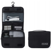 CoolStaff Organizer Na Kosmetyki Pojemny Kuferek Czarny z Paskiem Kieszonki Półeczki