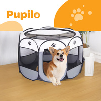 Pupilo Składany Przenośny Kojec Dla Kota Psa Szary z Okienkami 70 x 70 x 45 cm