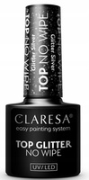 Claresa Top No Wipe Hybrydowy Połysk Brokatowy Srebrny Glitter Silver 5ml