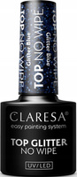 Claresa Top No Wipe Hybrydowy Połysk Brokatowy Niebieski Glitter Blue 5ml