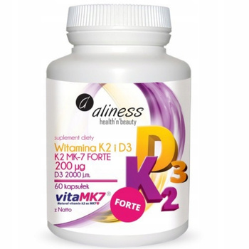 Aliness Witamina K2 MK-7 200 µg z Natto + D3 Suplement Diety 60 Kapsułek