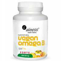 Aliness Vegan Omega 3 Forte DHA 500 mg Algi Morskie Wzrok Mózg 60 Kapsułek