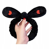 Opaska Kosmetyczna Do Włosów Kokarda Czarna Serca