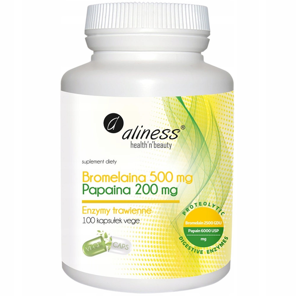 Aliness Bromelaina 500 mg Papaina 200mg Suplement Diety Enzymy Trawienne 100 Kapsułek