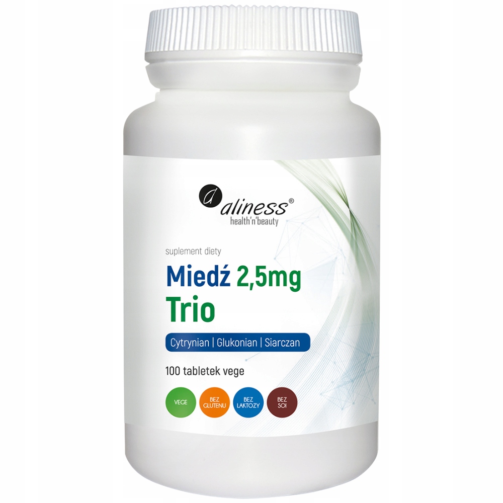 Aliness Miedź 2,5mg Trio Suplement Diety Odporność Włosy Skóra 100 Kaps