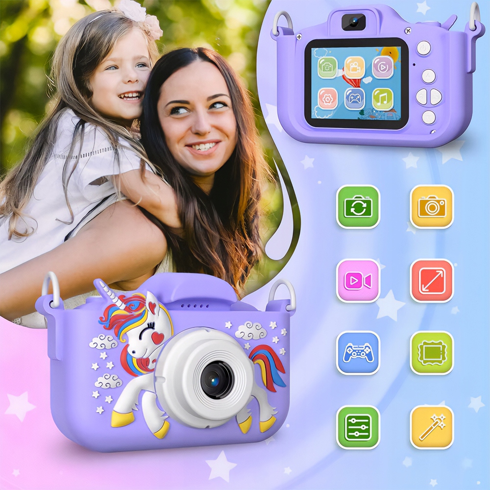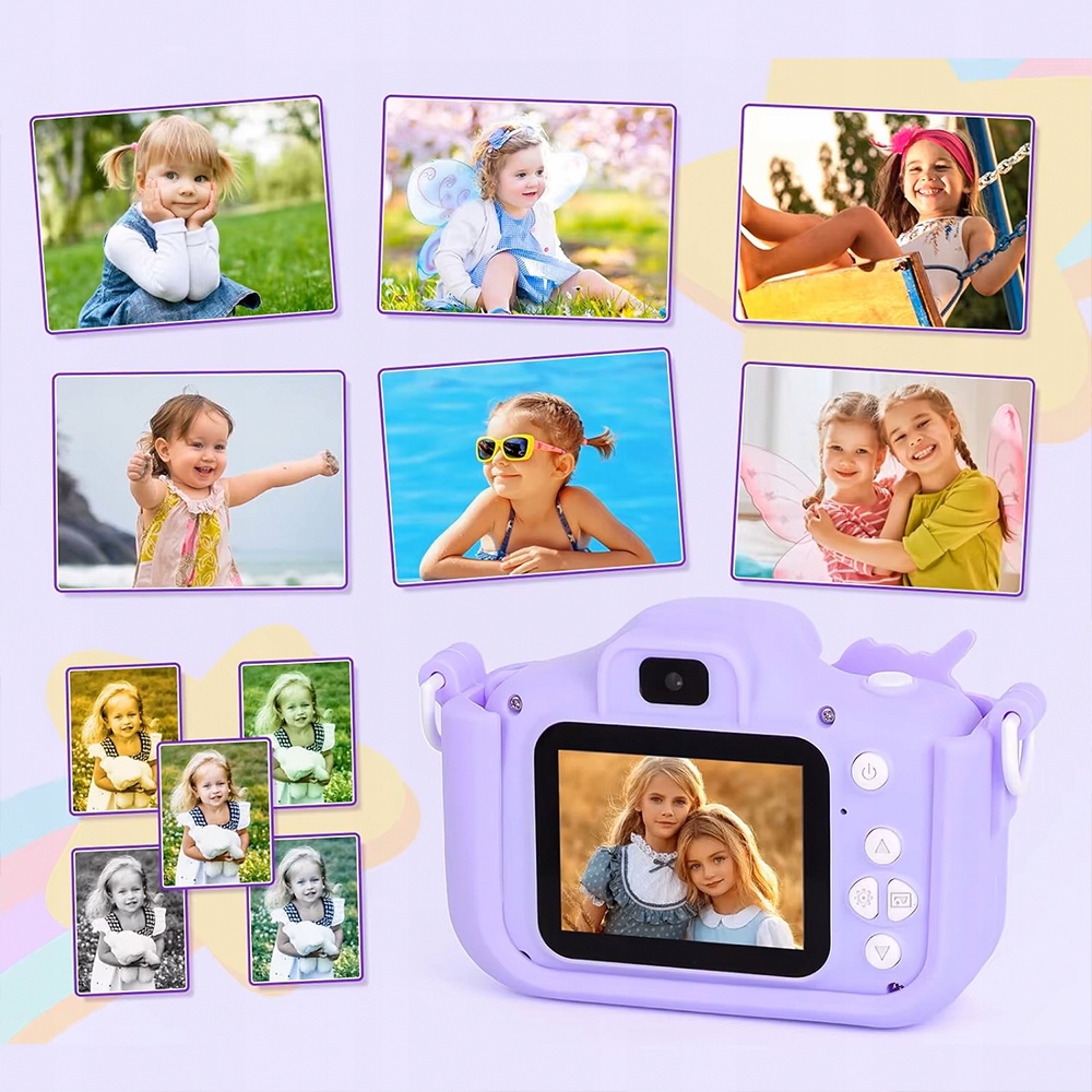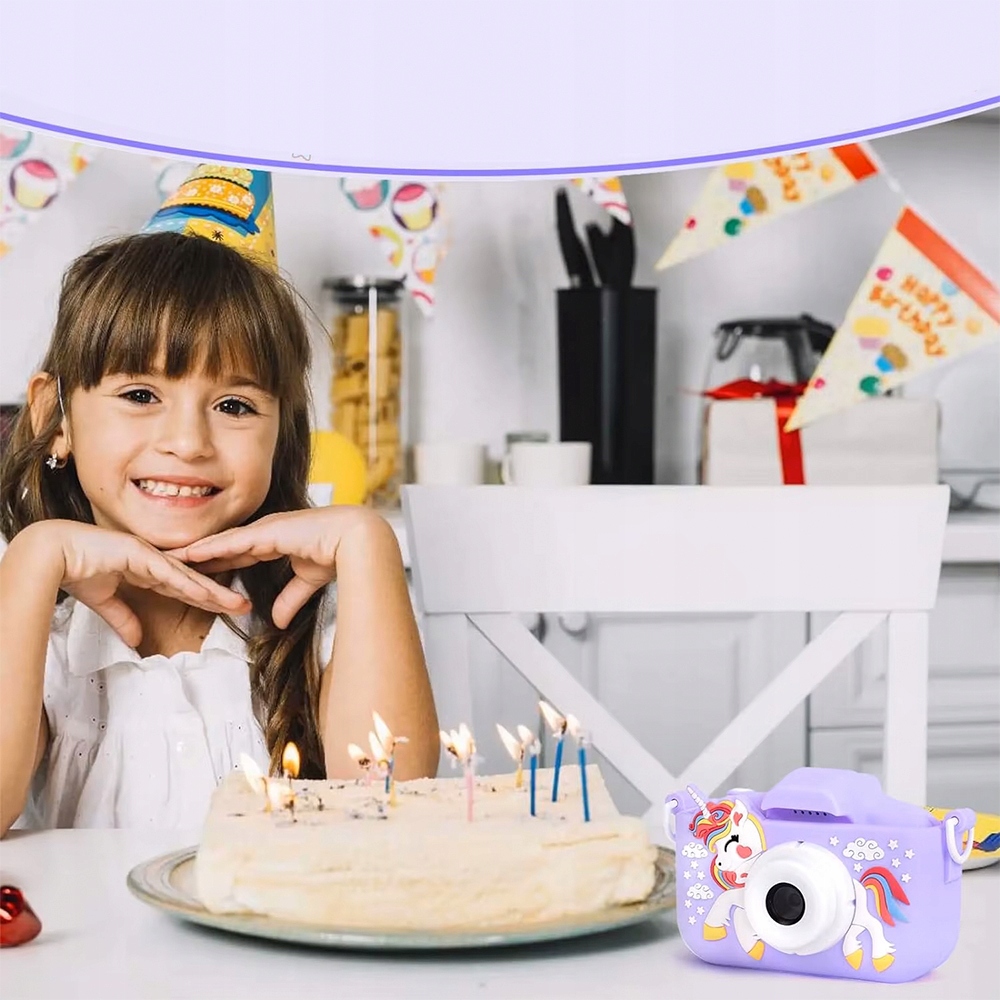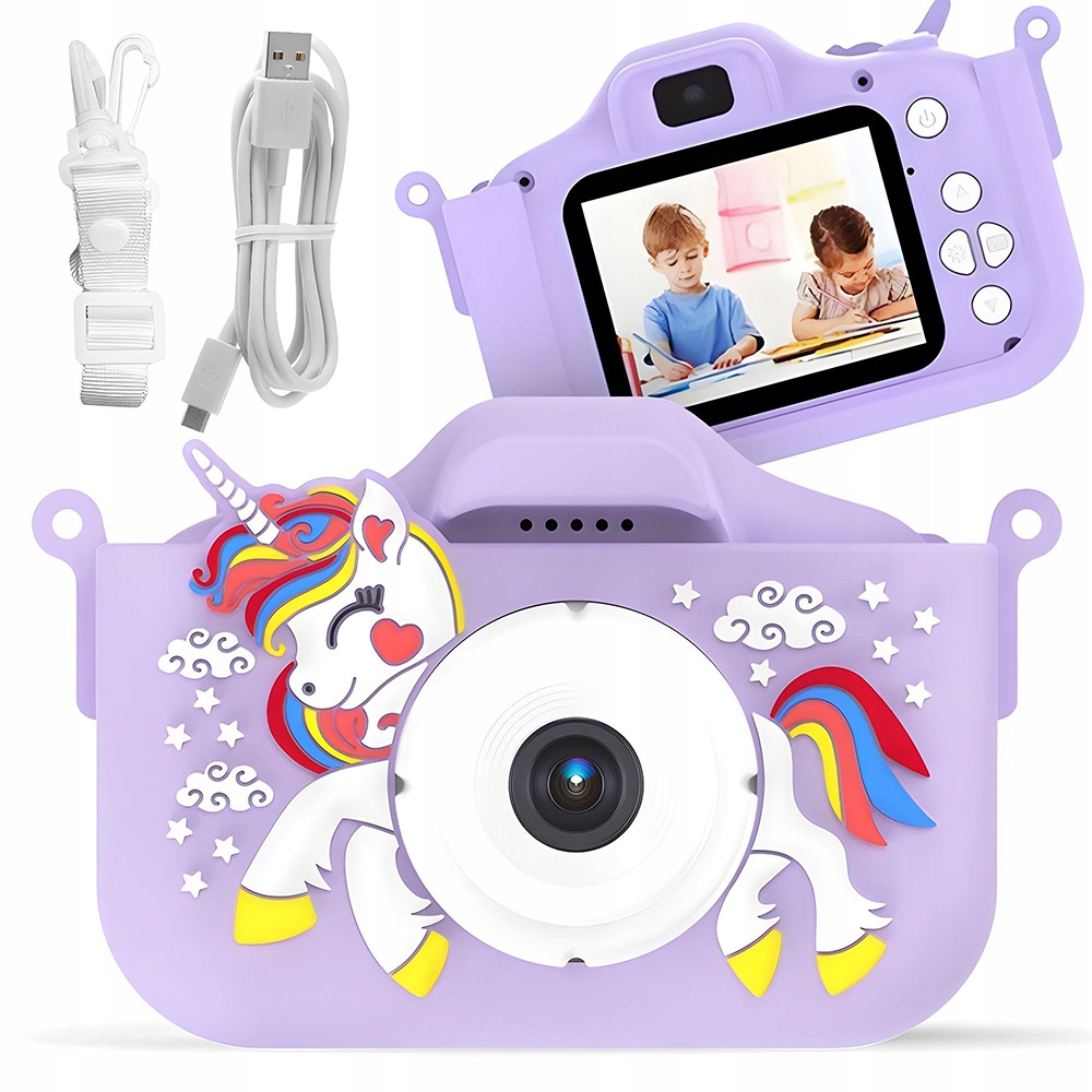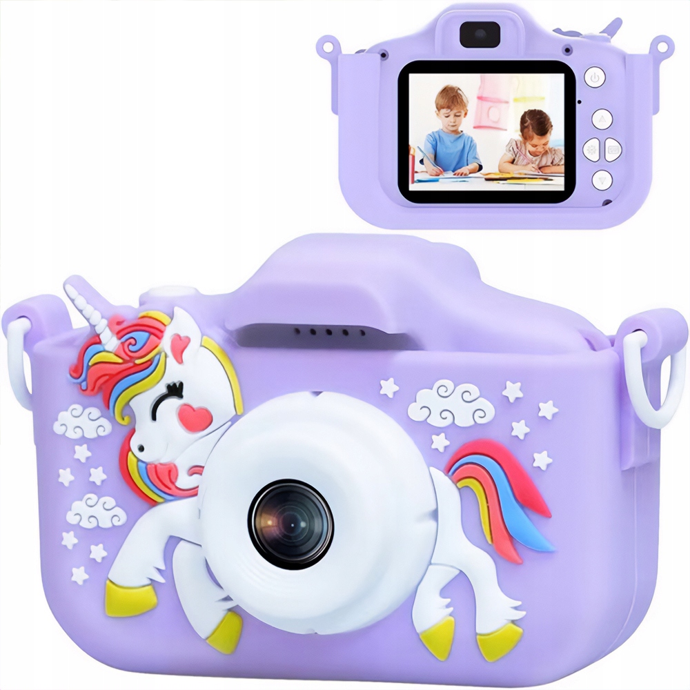 Aparat Cyfrowy Dla Dzieci 40MPX Kamera Gry + Smycz Fioletowy Jednorożec