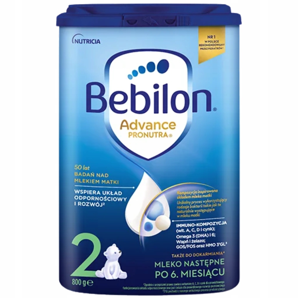 *Kompletna kompozycja Bebilon 2 Advance Pronutra zgodna z przepisami prawa zawiera m.in. witaminy A, C i D dla prawidłowego funkcjonowania układu odpornościowego, DHA dla rozwoju mózgu i wzroku oraz żelazo dla rozwoju poznawczego. Laktoza, DHA, witaminy, żelazo, wapń oraz nukleotydy naturalnie występują w mleku matki. Karmienie piersią jest najwłaściwszym sposobem żywienia niemowląt.