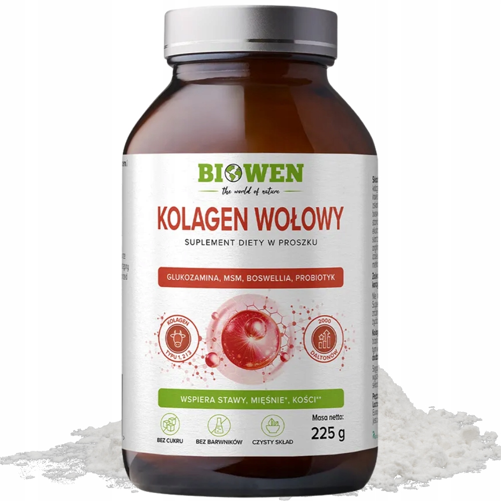 Biowen Kolagen Wołowy w Proszku Do Picia Suplement Diety Stawy Kości 225g