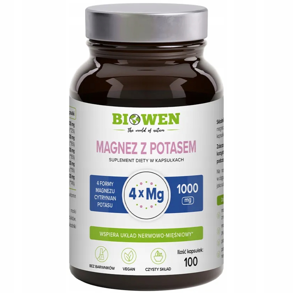 Biowen Magnez X4 z Potasem Cytrynian Magnezu Suplement Diety 100 Kapsułek