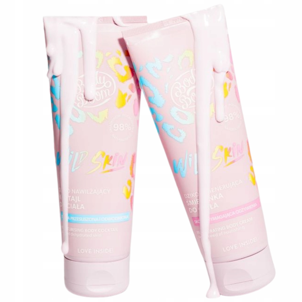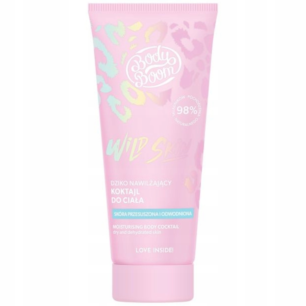BodyBoom Wild Skin jest naturalnym (98% składników pochodzenia naturalnego wg normy ISO 16128), dziko nawilżającym koktajlem do ciała o wegańskiej formule, stworzonym do pielęgnacji skóry przesuszonej i odwodnionej, której brakuje energii i jędrności. Pachnie tak zniewalająco, że eksplozja zapachów natychmiast doda Ci skrzydeł i odnajdziesz w sobie wewnętrzną moc nawet w szare, ponure dni.