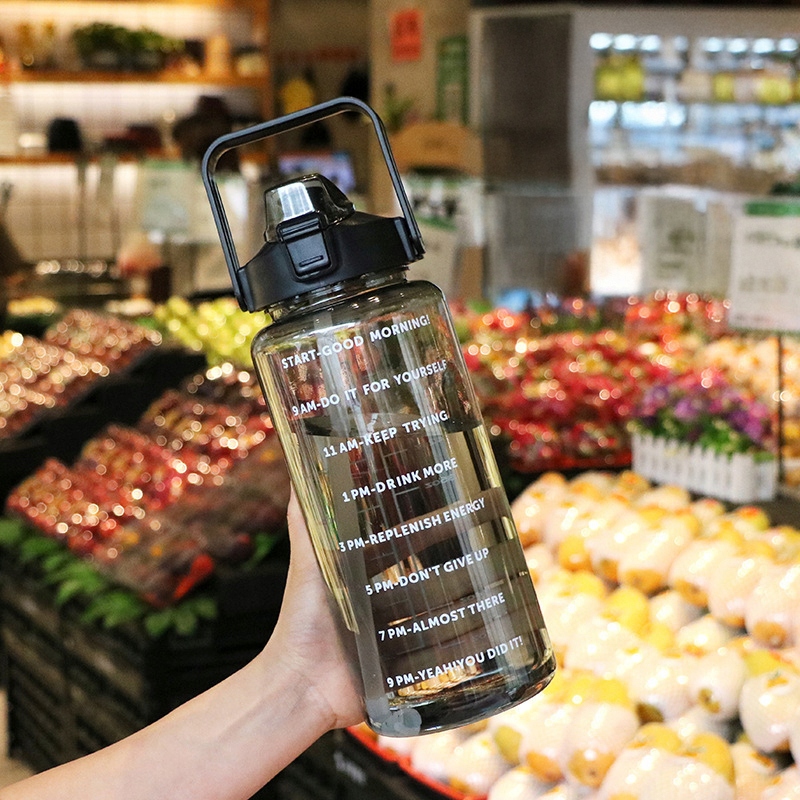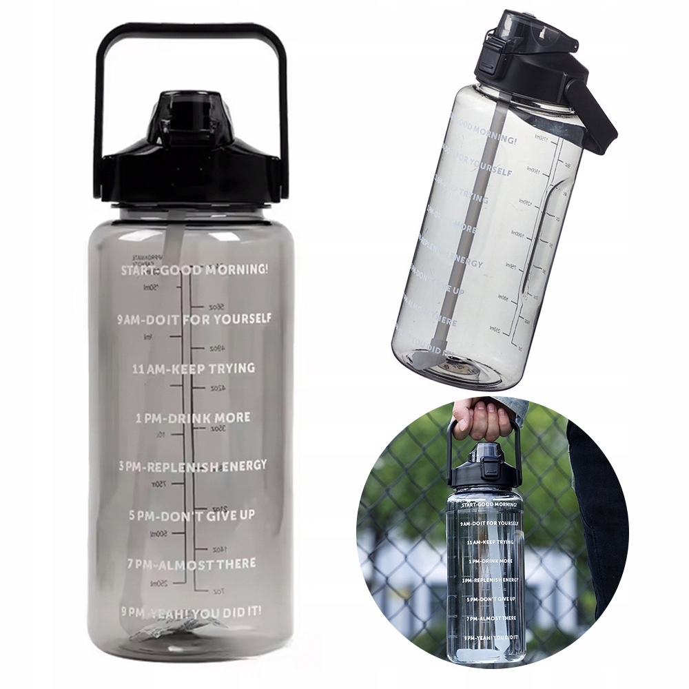 Butelka Na Siłownię Motywacyjna Bidon Na Wodę 2000ml z Ustnikiem Rurką 2L