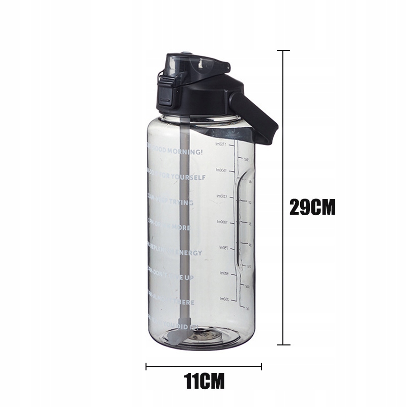 Butelka Na Siłownię Motywacyjna Bidon Na Wodę 2000ml z Ustnikiem Rurką 2L Czarny