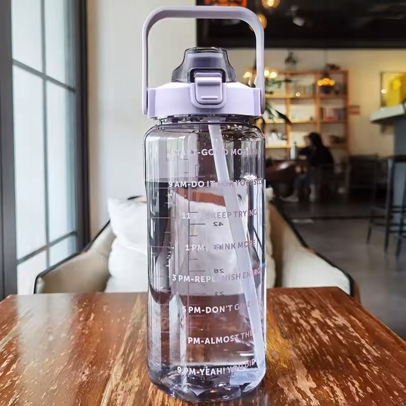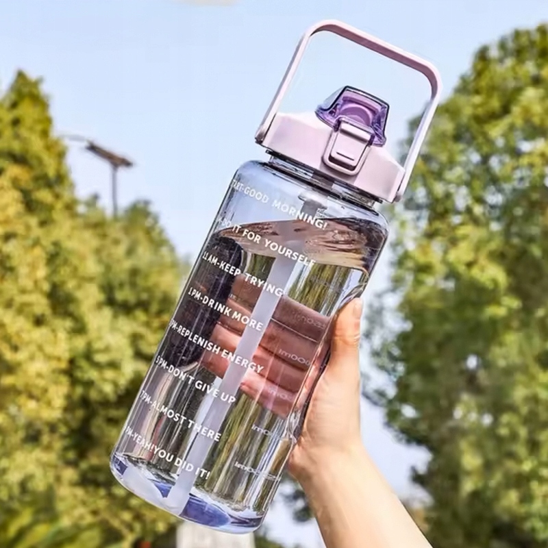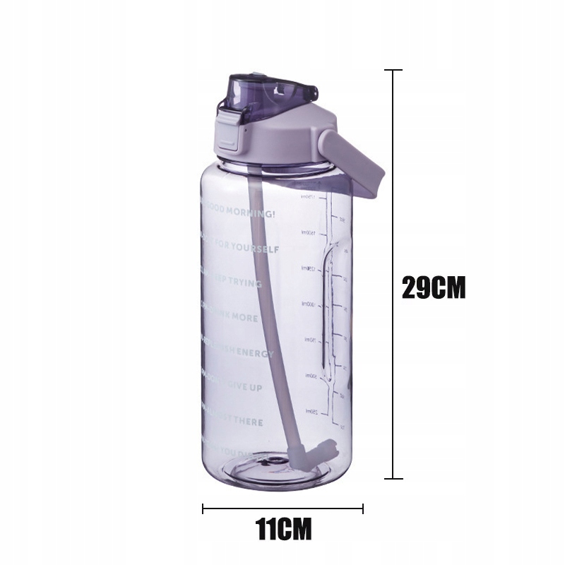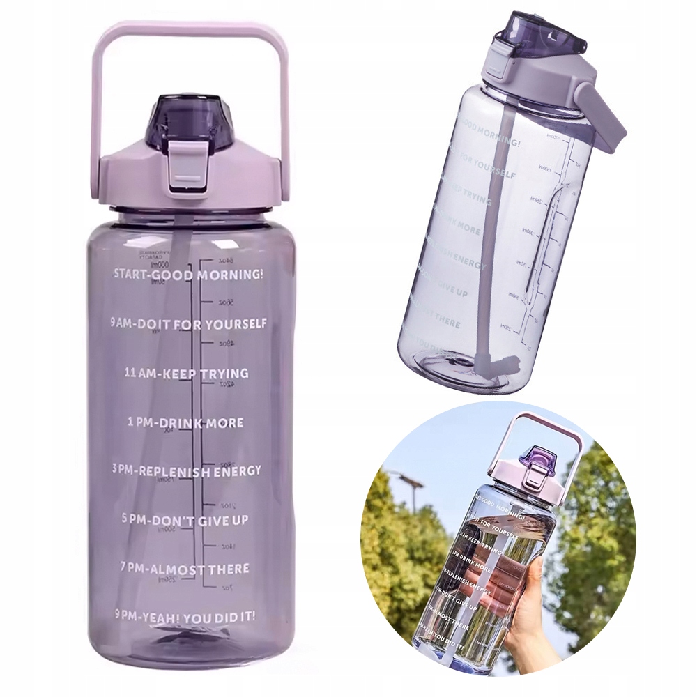 Butelka Na Siłownię Motywacyjna Bidon Na Wodę 2000ml z Ustnikiem Rurką 2L