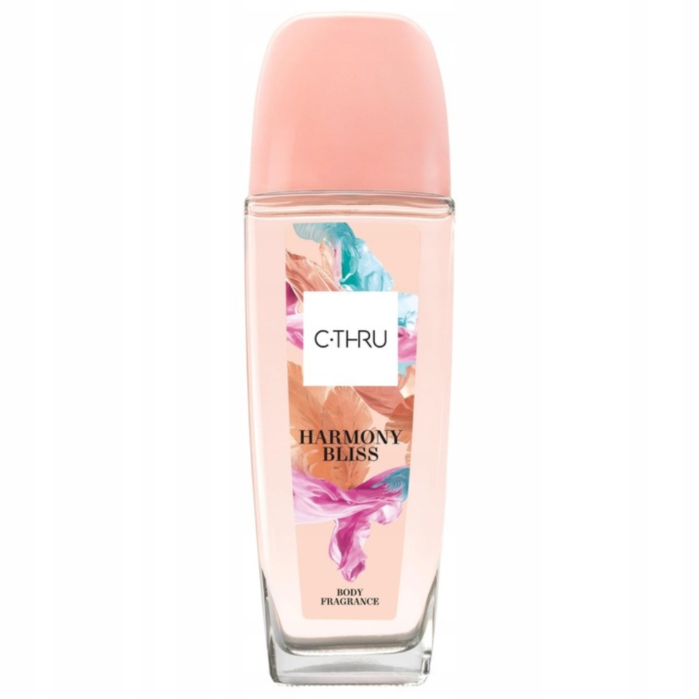 C•THRU Harmony Bliss to harmonijne połączenie owocowych nut gruszki, mandarynki i sorbetu truskawkowego, które w wyrafinowany sposób łączą się z aromatycznymi kwiatowymi zapachami płatków róży, magnolii i jaśminu, aby finalnie zmienić się w nuty drzewne drzewa kaszmirowego, bursztynu oraz białego piżma.