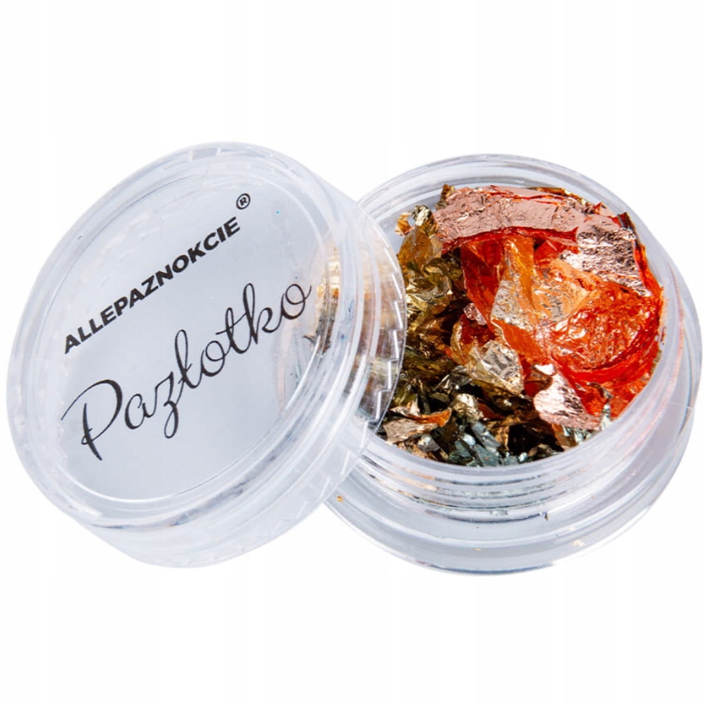 Cienka folia dwustronna do zdobienia paznokci. Może być wykorzystana przy każdej metodzie stylizacji. Wypełniony po brzegi słoiczek pozwoli Ci na najbardziej spektakularne i efektowne kompozycje. Mieniący się produkt przywołujący na myśl płynne złoto pozwoli Ci wykonać zdobienia z prawdziwego zdarzenia.