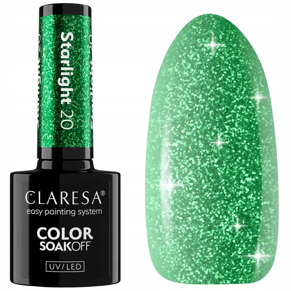 Claresa Lakier Hybrydowy Do Paznokci Zielony z Drobinkami Starlight 20 5g