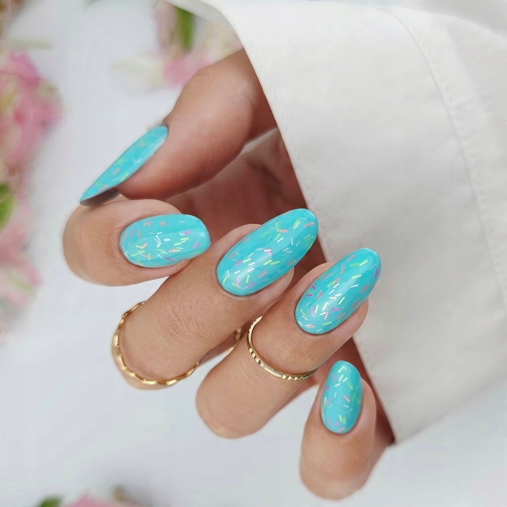 To prawdziwa uczta dla miłośników odważnych, energetycznych kolorów. Transparentna baza pozwala na subtelne podkreślenie naturalnej płytki paznokcia, jednocześnie dodając mu wyjątkowego charakteru dzięki neonowej, kolorowej posypce. Efekt jest lekki, zabawny i pełen wakacyjnego klimatu, idealny na lato czy imprezy tematyczne.