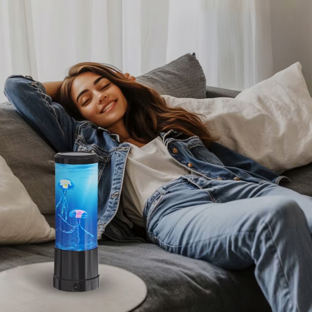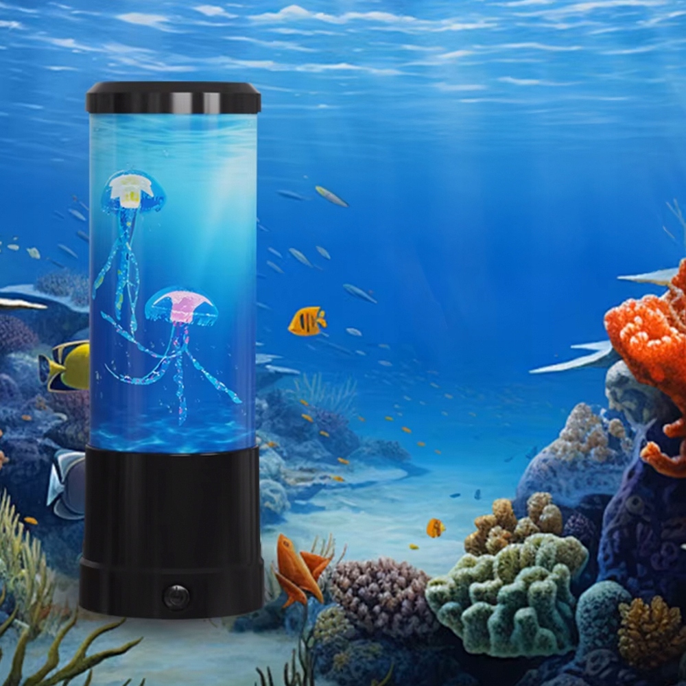 Oferujemy wyjątkową lampę dekoracyjną, która łączy nowoczesny design z efektem relaksu i wyciszenia. Kolorowe, realistycznie poruszające się meduzy unoszą się w podświetlanym zbiorniku, tworząc efekt głębi i hipnotyzującej lawy.
