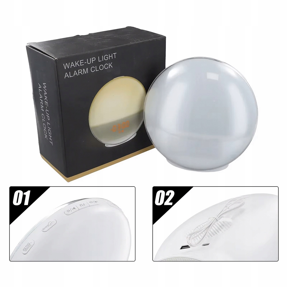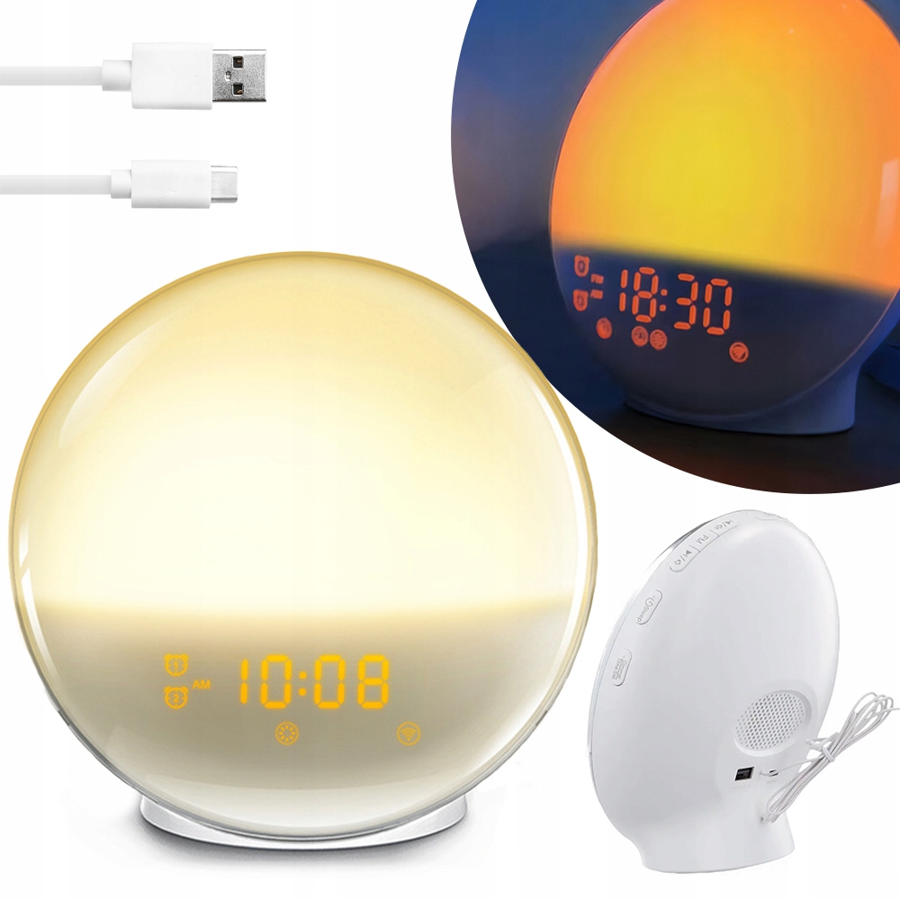 Lampka LED Nocna Wielofukncyjna Zegar Budzik Symulacja Wschodu Słońca Radio FM