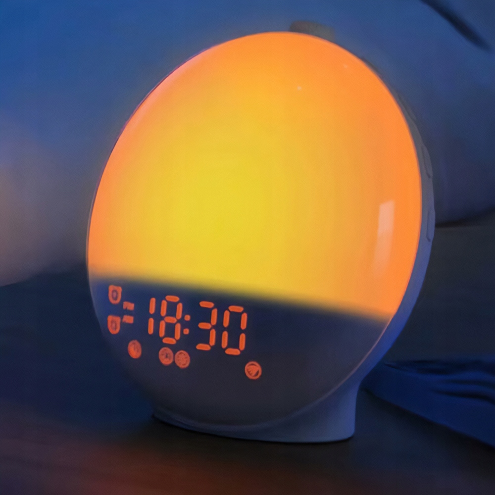 Ten innowacyjny zegar-budzik został zaprojektowany z myślą o naturalnym i komfortowym budzeniu oraz zasypianiu. Dzięki funkcji symulacji wschodu i zachodu słońca pozwala na harmonijną regulację rytmu dobowego, zapewniając lepsze samopoczucie każdego dnia.