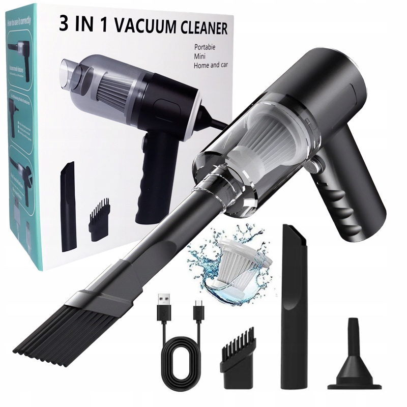Odkurzacz Ręczny Bezprzewodowy Bezworkowy Mini Samochodowy + Końcowki 120W