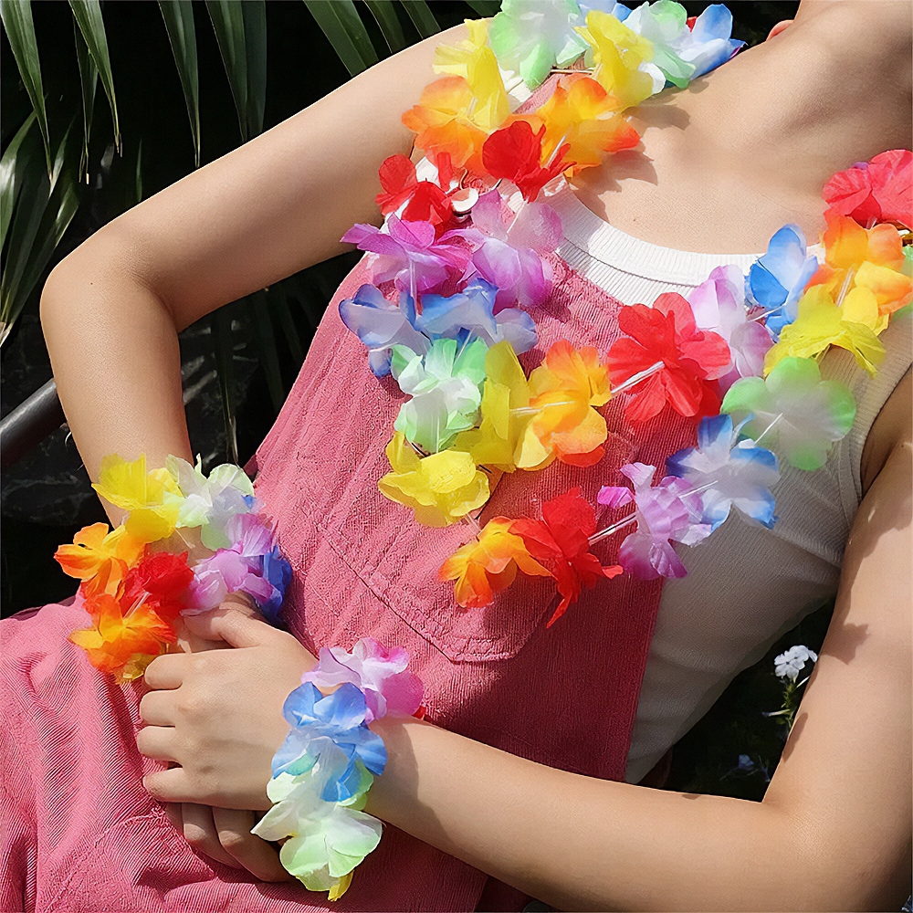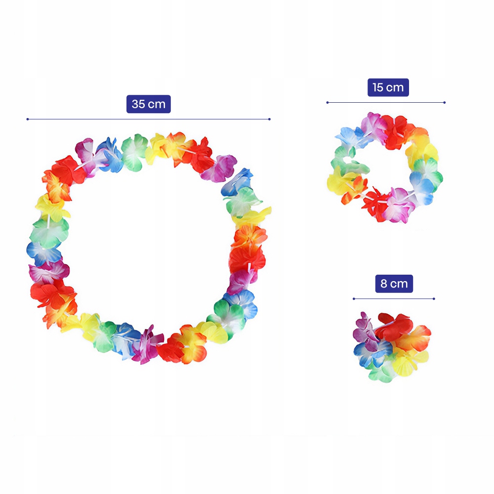 Zestaw jest uniwersalny – pasuje zarówno dzieciom, jak i dorosłym. Idealny na tematyczne przebrania w stylu hawajskim, tropikalnym lub boho.
