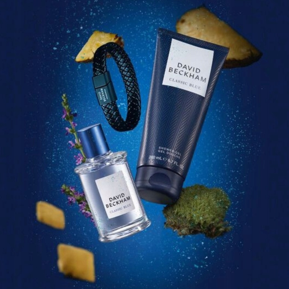 Wzbogać swój styl kultowym zapachem Classic Blue od Davida Beckhama. Ten kompletny zestaw oferuje nie tylko perfumy, ale także prysznic i stylowy dodatek - idealny dla nowoczesnego mężczyzny, który chce połączyć elegancję z codziennym życiem. Świeża i ponadczasowa kompozycja z nutami ananasa, grejpfruta, liścia fiołka w głowie, szałwia i zielone jabłko w sercu, paczula, drewno kaszmirowe i mech w podstawie. Ten aromatyczny zestaw to nie tylko genialne doznania zapachowe, ale również trwałość i poczucie pewności siebie przez cały dzień.