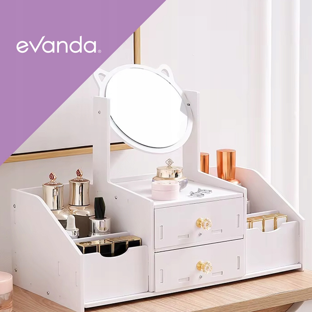 eVanda Toaletka Organizer Szkatułka Na Biżuterię Kosmetyki z Lusterkiem