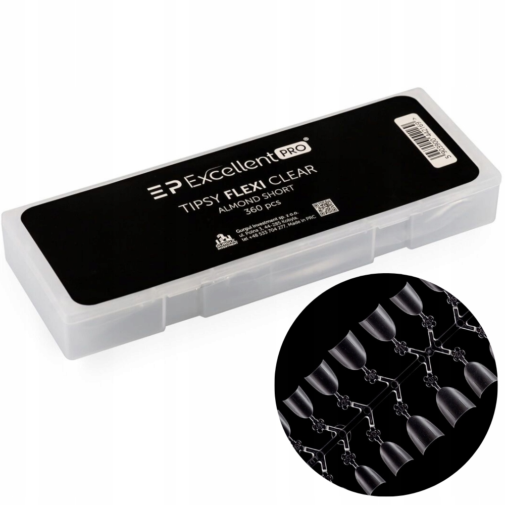 Wysokiej jakości przeźroczyste, tunelowe tipsy, bez kieszonek oraz z wyprofilowaną krzywą C w kształcie migdał. Tipsy Almond Short 360pcs to krótsza wersja tipsów Almond 448pcs. Wykonane z wysokiej jakości tworzywa sztucznego tipsy Excellent PRO są miękkie, elastyczne i cienkie, lecz jednocześnie bardzo wytrzymałe. Zaprojektowane tak, aby skracać czas przedłużania naturalnej płytki i idealnie naśladować jej kształt, umożliwiając ich prawidłowe wybudowanie. Łatwo i szybko przedłużysz nimi paznokcie, bez używania tradycyjnych szablonów papierowych. Ich optymalna długość pozwala na przedłużenie paznokci bez konieczności skracania. Oferują aż 12 rozmiarów, więc dopasujesz je do każdego rodzaju paznokci. Wystarczy, że nałożysz klej na tips i przykleisz go na przygotowaną uprzednio naturalną płytkę. Można również mocować je na bazie EXCELLENT PRO MULTIFUNCTION ONE COAT GRAFEN BASE eliminując w ten sposób potrzebę używania kleju.