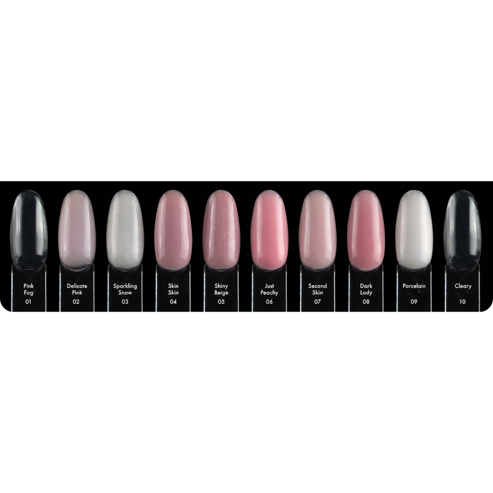 Baza w naturalnym, beżowo-różowym kolorze, przypominającym kolor płytki paznokciowej oraz z dodatkiem włókien poliamidowych, wapnia i witamin. Niezwykle mocna a jednocześnie elastyczna baza, dzięki której można zapomnieć o słabych i wyginających się paznokciach przy każdej czynności. Bogaty skład sprawia, że baza utwardza płytkę paznokciową, co skutkuje tym, że produkty nałożone w późniejszym czasie nie będą pękały i odpryskiwały a manicure będzie trwały i odporny na uszkodzenia przez wiele tygodni. Dodatek "inteligentnych" włókien powoduje, że baza rozprowadza się równomiernie, doskonale trzymając się płytki paznokcia oraz nie zalewając skórek. Baza jest przeznaczona do każdego rodzaju paznokci, szczególnie tych problematycznych, gdyż płytka jest maksymalnie odżywiona, wzmocniona i utwardzona a uczucie pieczenia zminimalizowane. Można nią delikatnie nadbudować paznokcie oraz wyrównać nierówności. Dodatek witaminy E oraz wapnia pomaga w odbudowie słabej, zniszczonej i kruchej płytki. Piękny kolor i krycie wyeliminuje potrzebę nakładania lakieru hybrydowego, co pozwoli na oszczędność czasu a tym samym zwiększenie tempa pracy.