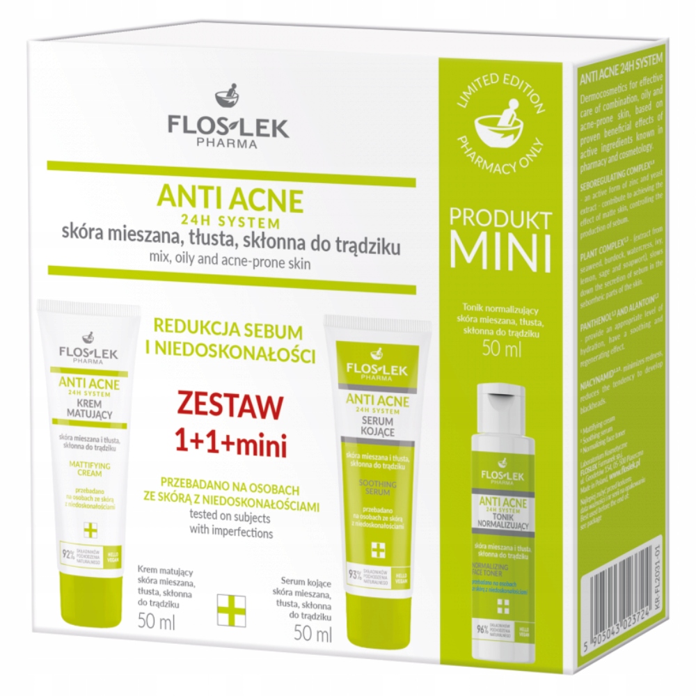 Floslek Anti Acne 24H Zestaw Prezentowy 3 Kosmetyków Damskich Do Twarzy