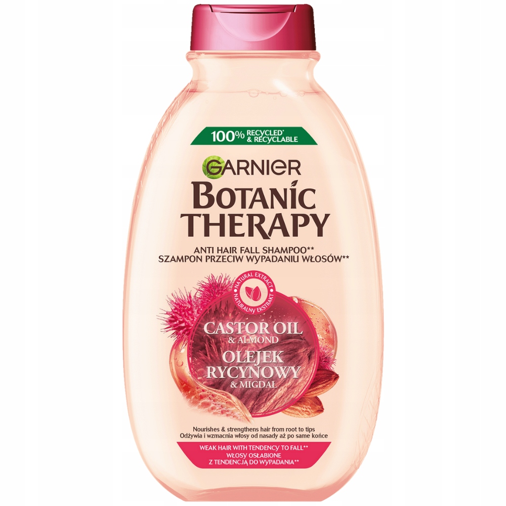Eksperci Garnier w dziedzinie botaniki wybrali organiczny olej z migdałów, aby stworzyć wzmacniającą formułę naszego szamponu przeciw wypadaniu włosów. Szampon ten odżywia i wzmacnia włosy od nasady aż po same końce. Szampon z olejkiem rycynowym i olejkiem ze słodkich migdałów Garnier Botanic Therapy to unikalna, odżywcza formuła, idealna do włosów osłabionych i łamliwych.