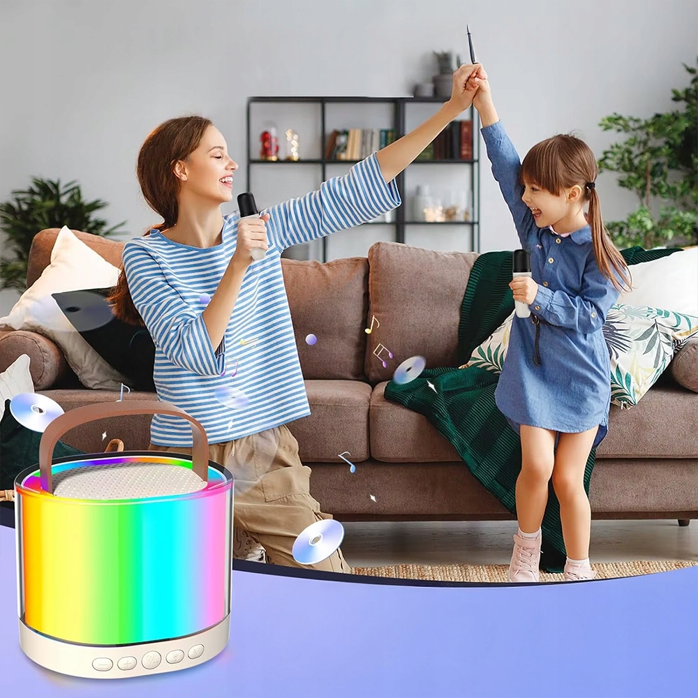 Zestaw karaoke jest wyposażony w akumulator litowo-jonowy o pojemności 1200 mAh, który zapewnia długotrwałe działanie. Przy 50% głośności, urządzenie może działać nawet przez kilka godzin bez potrzeby ładowania. To doskonała opcja zarówno do zabawy w pomieszczeniach, jak i na świeżym powietrzu. Dzięki temu Twoje dziecko może cieszyć się nieprzerwaną zabawą podczas spotkań z przyjaciółmi, imprez rodzinnych czy w podróży.