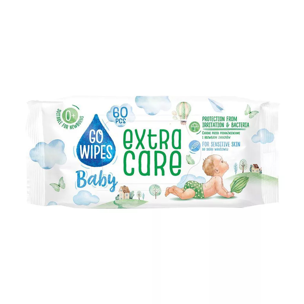GoWipes Extra Care Nawilżane Chusteczki dla Dzieci Antybakteryjne z Alantoiną 60 Sztuk