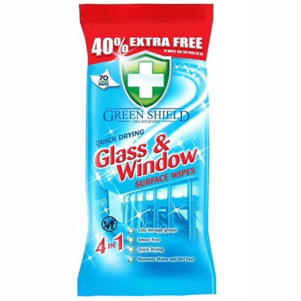 Green Shield Mokre Chusteczki Nawilżane Do Mycia Szyb Okien Luster 70 szt