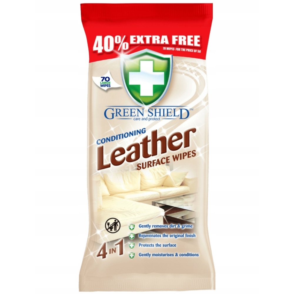 Green Shield Leather to nawilżane chusteczki przeznaczone do pielęgnacji i czyszczenia powierzchni skórzanych. Ich specjalna formuła skutecznie usuwa kurz, brud oraz odświeża i nawilża skórę, przywracając jej elastyczność i połysk. Idealne do użytku domowego, w samochodzie oraz w biurze.