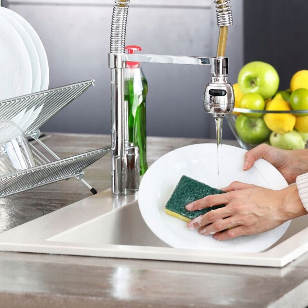 Gąbka, która doskonale domyje resztki jedzenia oraz inne kuchenne zabrudzenia. Żółta strona gąbki jest miękka i dobrze dba o delikatniejsze powłoki. Ciemna strona nie nadaje się do stosowania na wrażliwe powierzchnie, takie jak szkło i teflon.