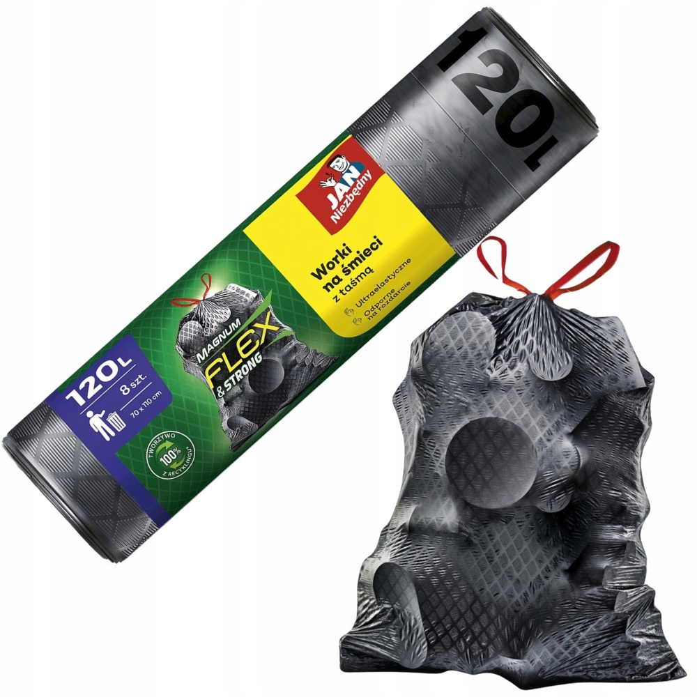 Jan Niezbędny Magnum Flex Strong Czarne Worki Na Śmieci 120l z Taśmą 8 szt