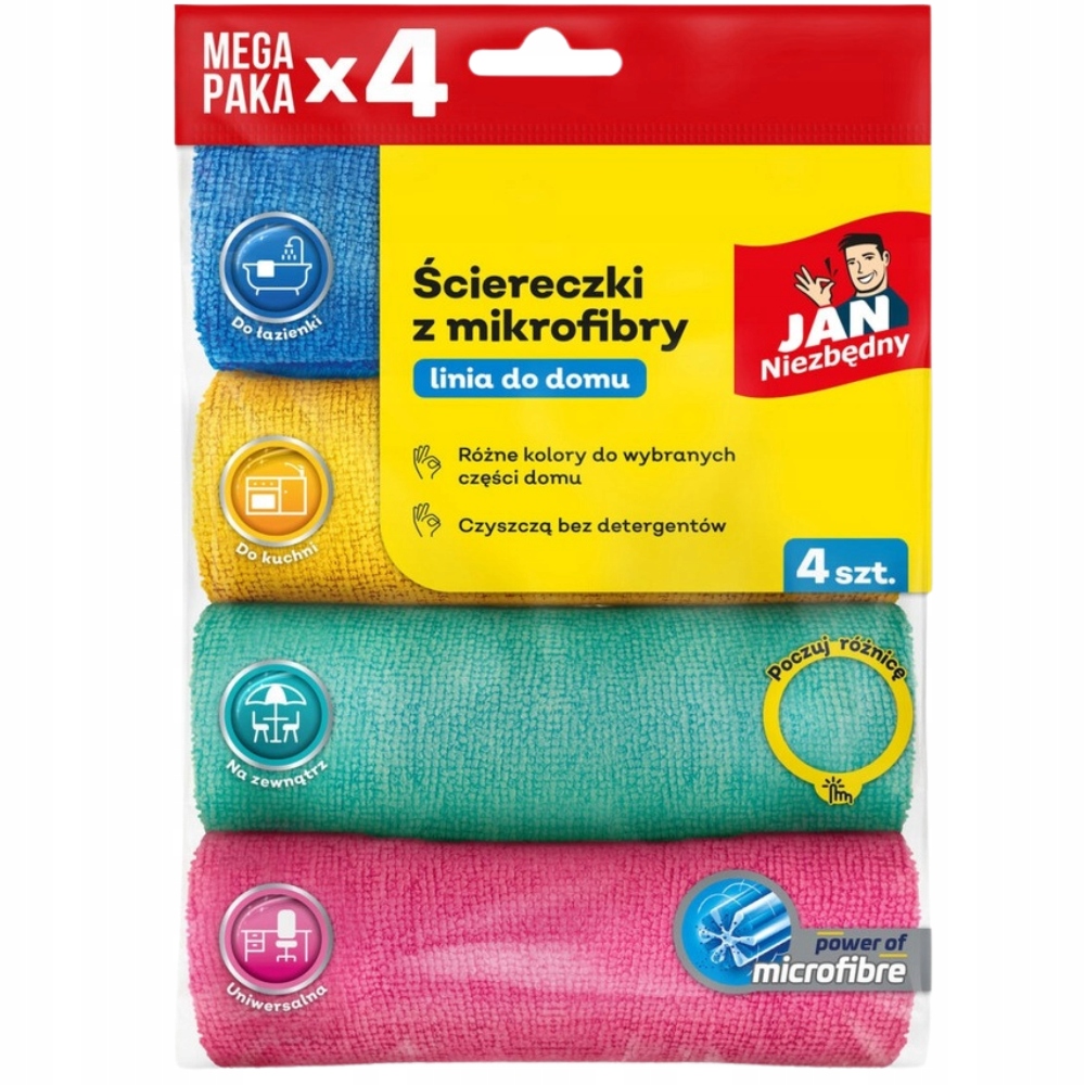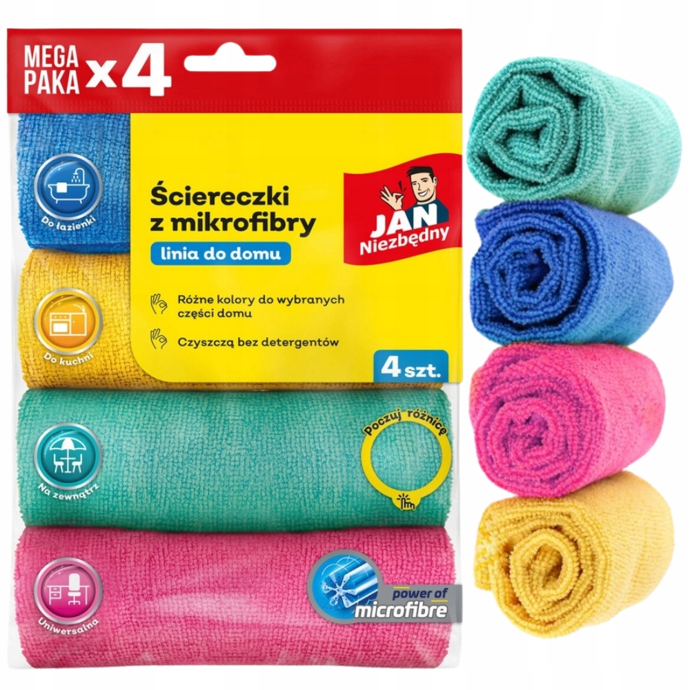 Jan Niezbędny Mikrofibra Ściereczki Uniwersalne Chłonne Bez Smug 4 Sztuki