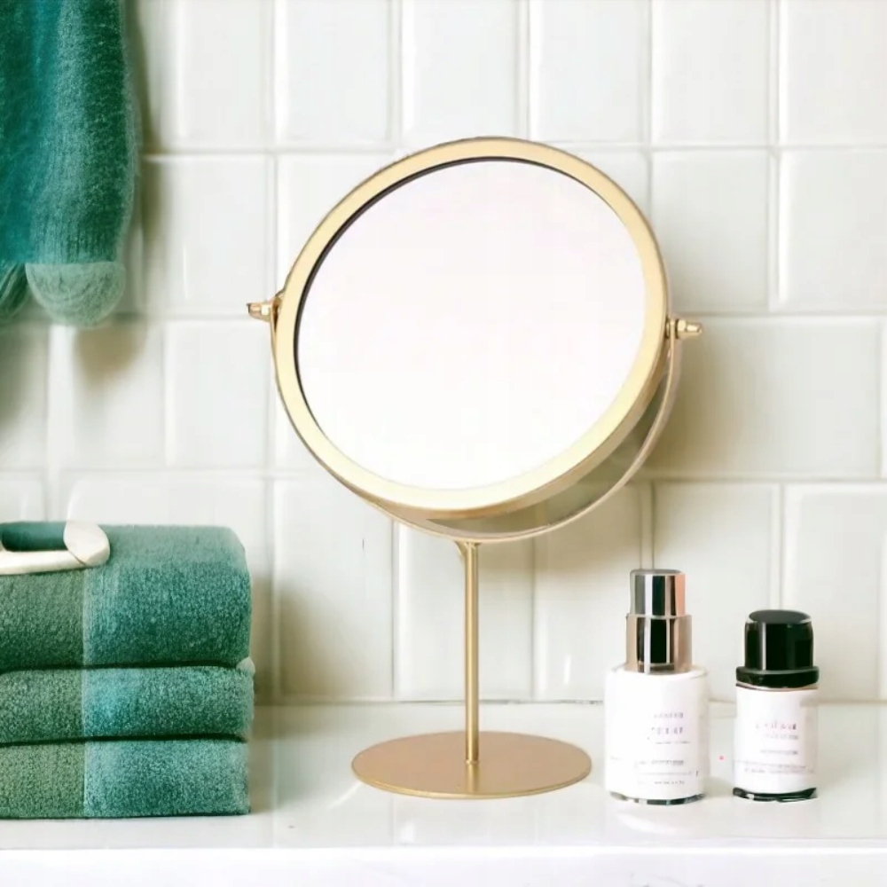 Jednostronne Lusterko Do Makijażu Kosmetyczne Stojące Regulowane Złote
