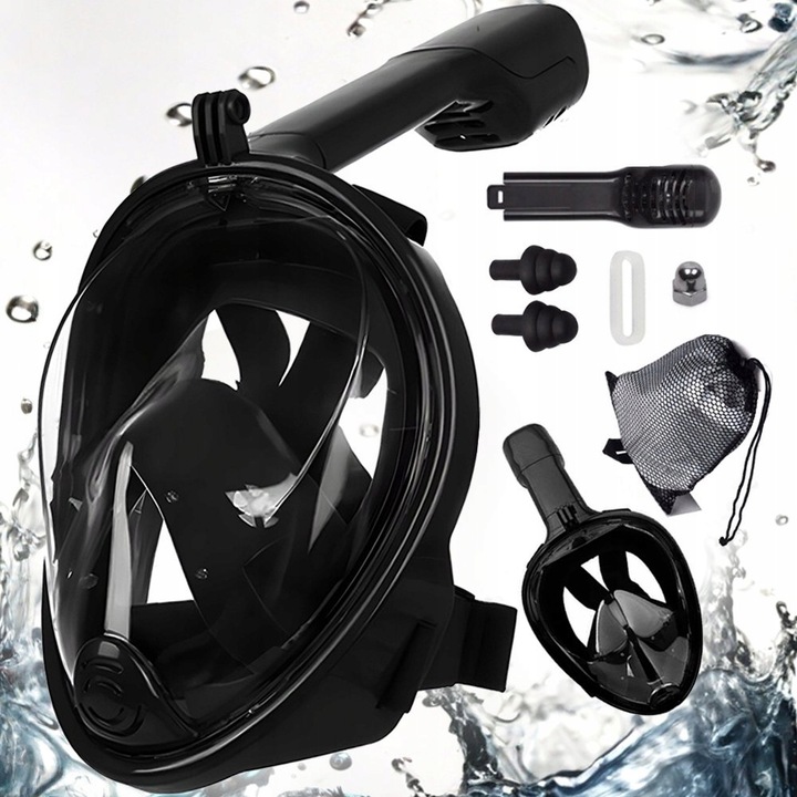 Maska Do Pływania Nurkowania Snorkeling Pełnotwarzowa Czarna S/M
