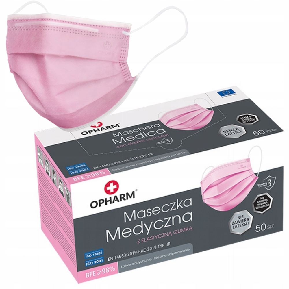 Maska Ochronna Do Twarzy Higieniczna Medyczna z Gumką 3 Warstwy 50 sztuk