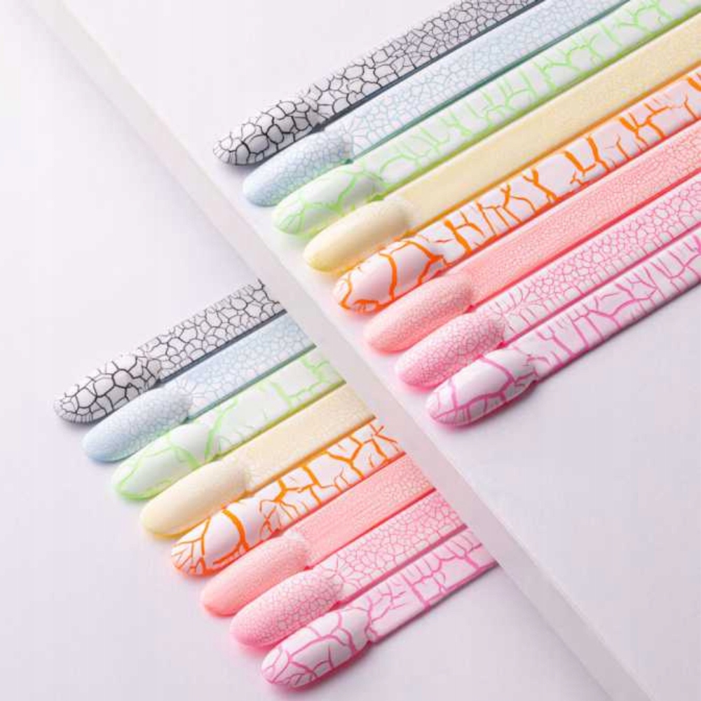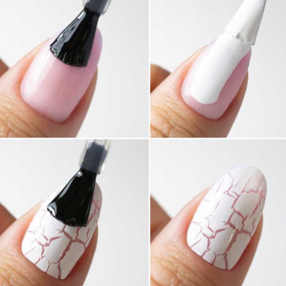 - Wielkość pęknięć zależy od użytego produktu podkładowego. Jeśli chcemy uzyskać regularne pęknięcia zalecamy użycie bazy X-Bond MollyLac i utwardzenie jej w lampie 30 sek.