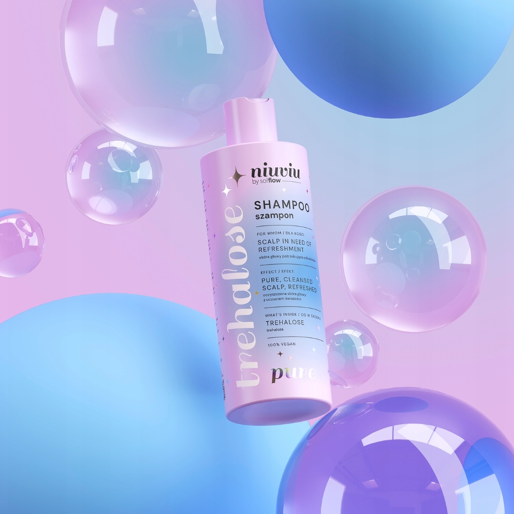 Niuviu PURE Shampoo z trehalozą to wegański szampon, który delikatnie, ale skutecznie oczyszcza skórę głowy i włosy. Dzięki naturalnym mikroziarnom usuwa martwy naskórek, zapewniając uczucie świeżości i lekkości już po pierwszym użyciu. To idealne rozwiązanie, gdy Twoja skóra głowy potrzebuje odświeżenia, a włosy - lekkości i energii. Formuła PURE z naturalnymi mikroziarnami skutecznie złuszcza martwy naskórek, pozostawiając skórę głowy czystą i świeżą. Trehaloza nawilża i wzmacnia zarówno skórę, jak i włosy, zapewniając im zdrowy wygląd i większą odporność na uszkodzenia.