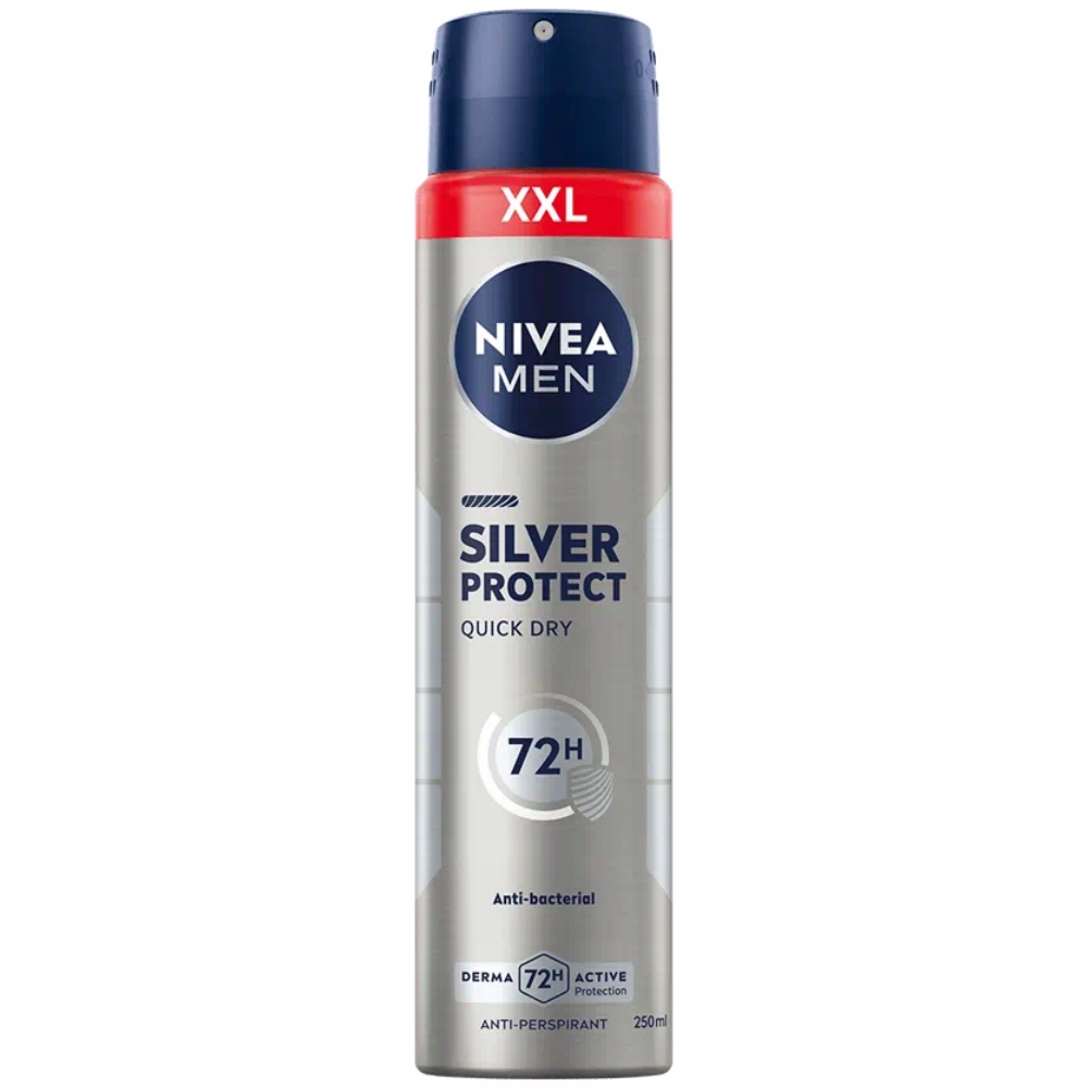 Nivea Men Silver Protect Quick Dry Antyperspirant męski w sprayu to innowacyjna, antybakteryjna formuła z jonami srebra, która skutecznie zapobiega powstawaniu nieprzyjemnego zapachu. Antyperspiracyjne działanie kosmetyku zapewnia długotrwałą, 72 godzinną ochronę przed nadmiernym poceniem się. Dzięki innowacyjnej formule opartej na molekułach srebra o silnym działaniu antybakteryjnym, męski antyperspirant Silver Protect zwalcza bakterie zapobiegając powstawaniu nieprzyjemnego zapachu. Świeży, męski zapach. Możesz cieszyć się nowoczesnym, męskim zapachem przez wiele godzin po aplikacji. Wyjątkowa formuła Derma Active Protection 72 godziny.