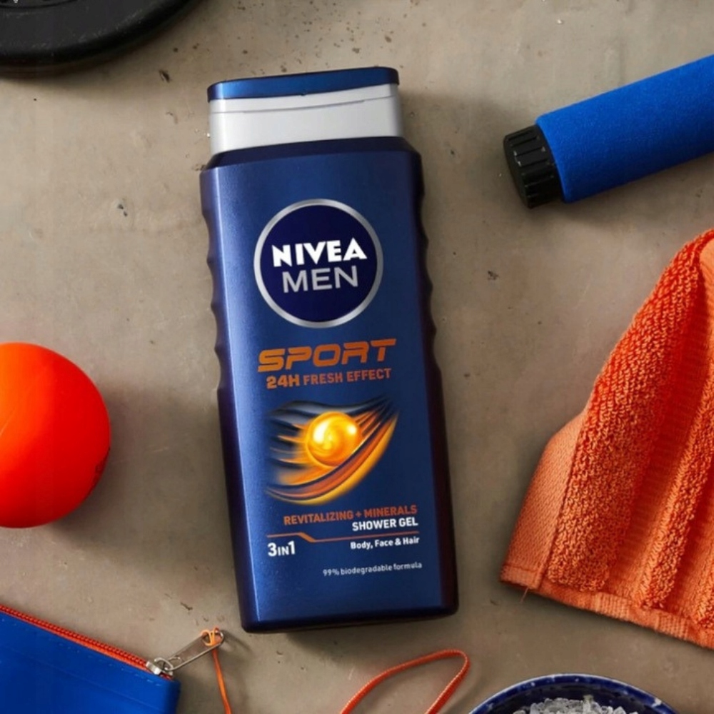 Postaw na odprężający prysznic, zwłaszcza po treningu! Żel pod prysznic dla mężczyzn Nivea Men Sport 24H Fresh Effect to wyjątkowy kosmetyk myjący 3w1, odpowiedni do oczyszczania ciała, twarzy oraz męskich włosów. Formuła z dodatkiem minerałów i o zapachu limonki tworzy pobudzającą pianę i odpręża zmęczone ciało, zwłaszcza po sportowej aktywności. Żel pod prysznic skutecznie oczyszcza oraz zapewnia długotrwałą pielęgnację, bez zaburzania naturalnej równowagi pH skóry. Jego świeży, męski zapach daje przyjemne uczucie czystości i świeżości, które pozostaną z Tobą na dłużej. To prawdziwy zastrzyk energii pod prysznicem.