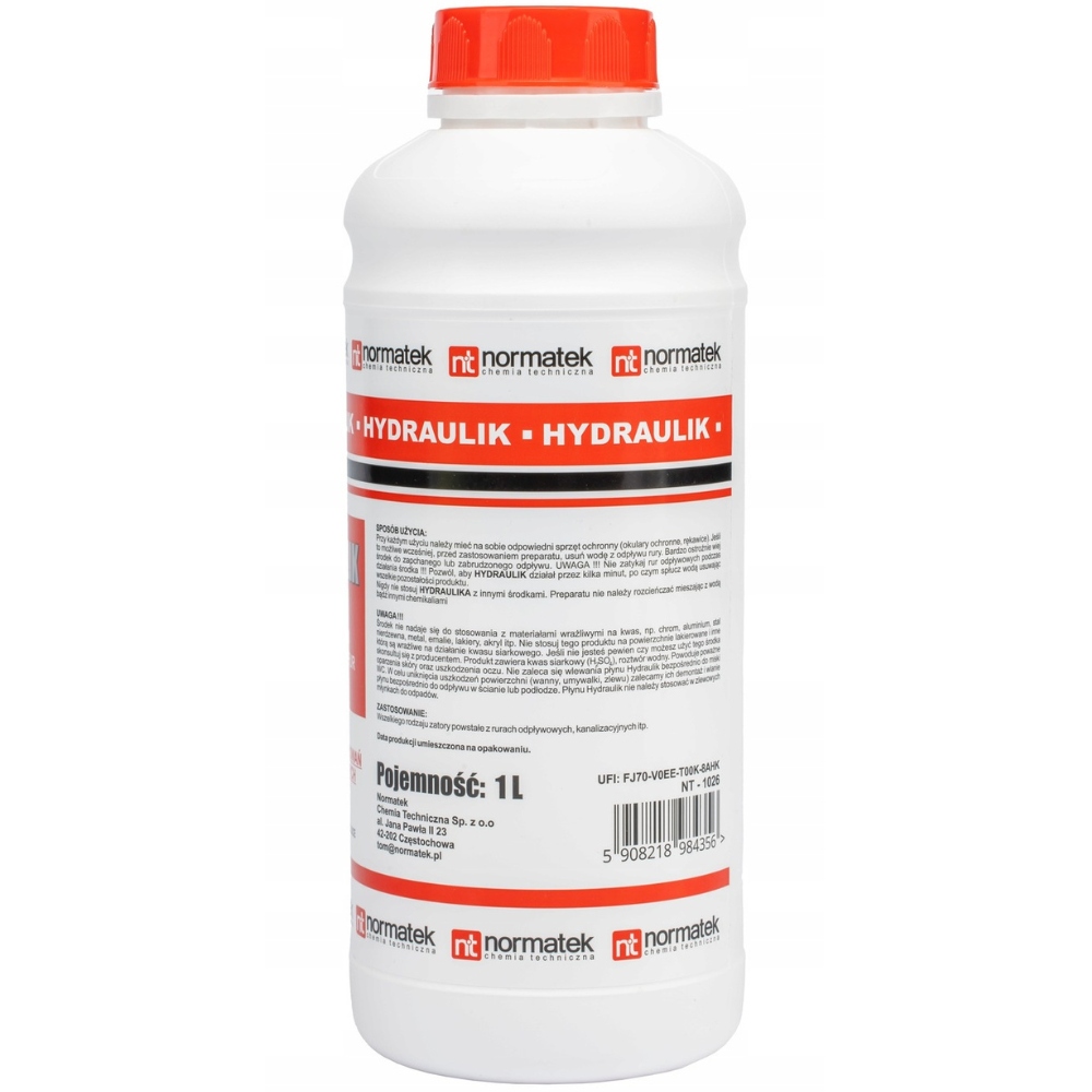 Szybkie i skuteczne rozwiązanie dla zatkanych rur! Normatek Hydraulik to specjalistyczny środek chemiczny przeznaczony do udrażniania rur kanalizacyjnych, syfonów oraz instalacji odpływowych. Dzięki silnej formule błyskawicznie rozpuszcza tłuszcze, włosy, resztki organiczne i inne zanieczyszczenia, które powodują zatory w rurach.