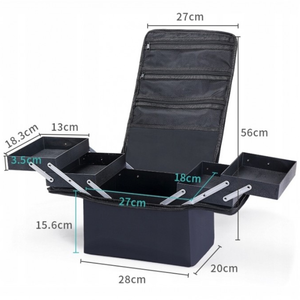 - duża pojemność, kuferek składany - pomieści kosmetyki kolorowe, pędzle, lakiery, kremy i wiele więcej