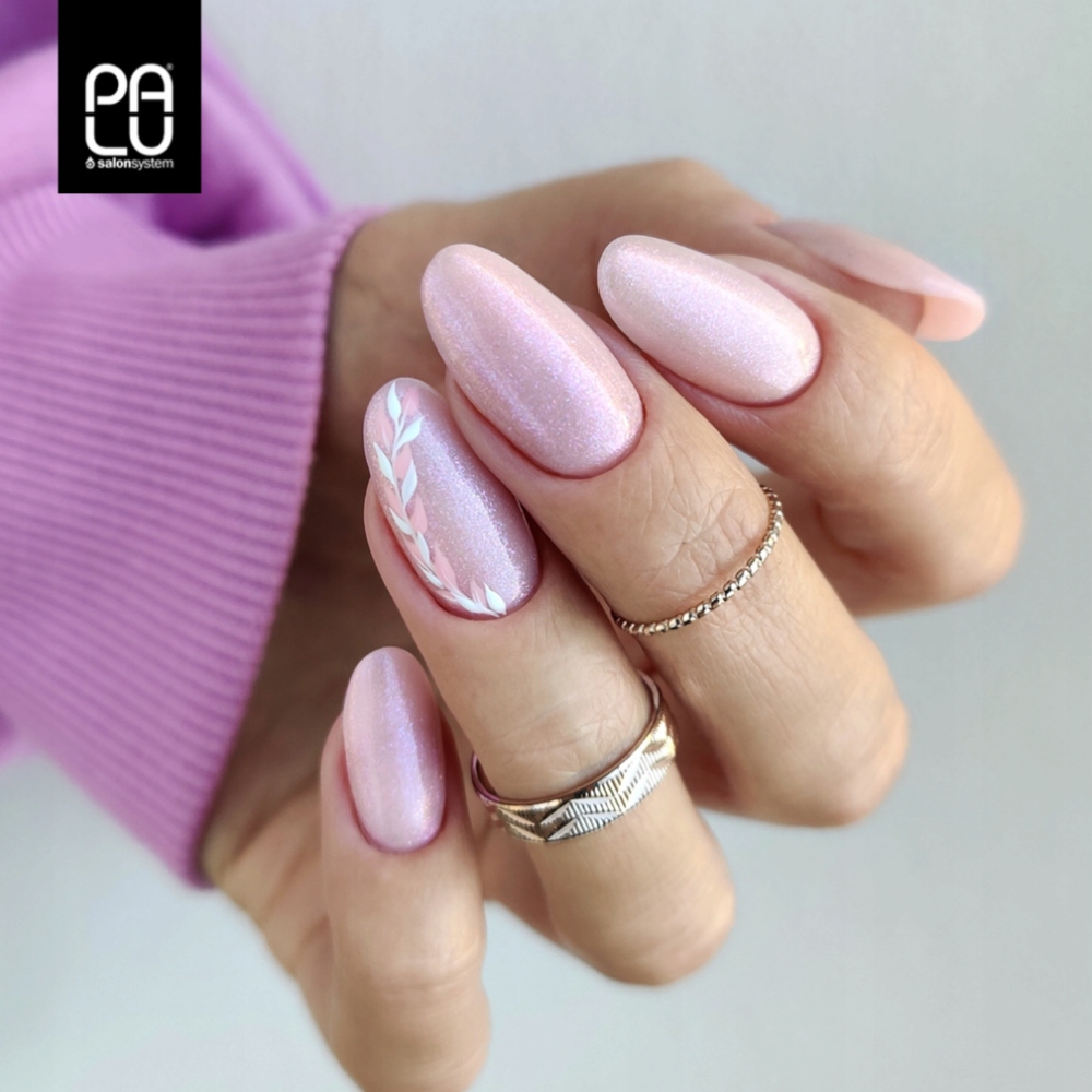 subtelny różowy odcień z opalizującą różowo-niebieską drobiną