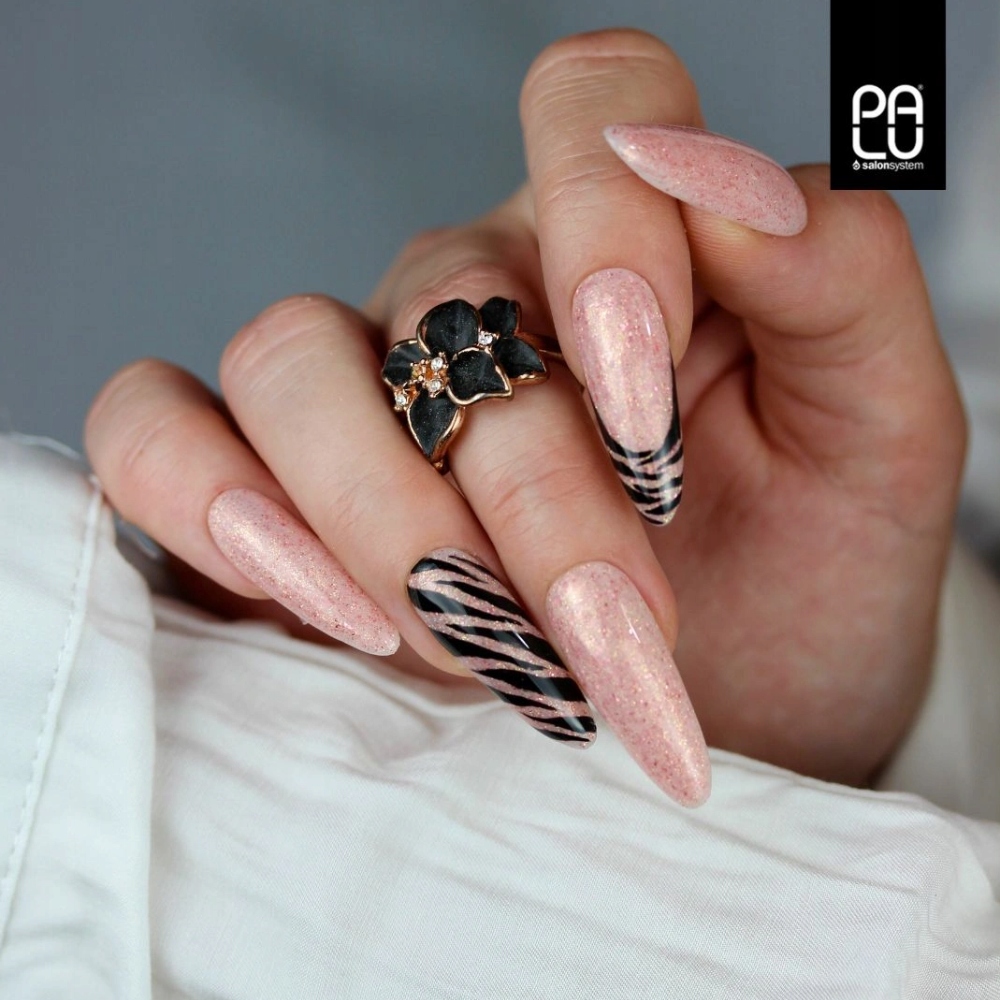 naturalny odcień z płatkami różowego złota i złotą drobinką